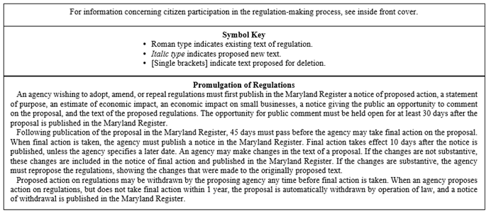appearing in the Proposed Action on Regulations section of the Maryland