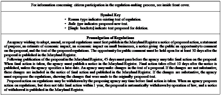 Maryland Regulations. Any change to the text of regulations published in COMAR, whether by adoption, amendment,
